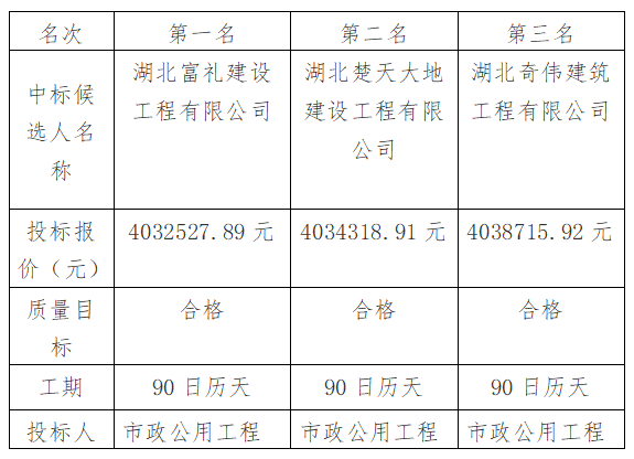 大冶市金山店鎮(zhèn)火石村2023和美鄉(xiāng)村建設(shè)試點村項目工程于2023年8月10日在在云上大冶聚焦三農(nóng)模塊發(fā)布招標公告,2023年9月1日在大冶市農(nóng)村綜合產(chǎn)權(quán)交易中心(湖北省大冶市七里界國際金融中心二樓)開標室,并于2023年9月1日完成評標工作。根據(jù)評標委員會提交的評標報告,大冶市金山店鎮(zhèn)火石村2023和美鄉(xiāng)村建設(shè)試點村項目工程已經(jīng)確認評標結(jié)果,現(xiàn)進行評標結(jié)果公示。